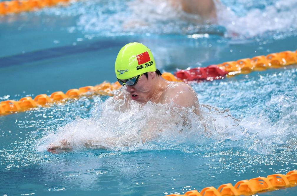 3月19日,孫佳俊在男子50米蛙泳決賽中。新華社記者 李紫恒 攝