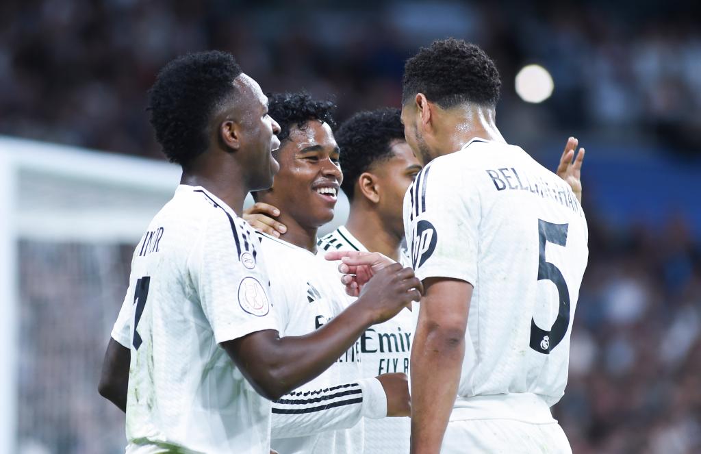 皇馬首回合在客場1:0小勝對手。回到伯納烏,“白衣軍團(tuán)”卻在開場第16分鐘率先丟球。巴雷內(nèi)切亞帶球突入禁區(qū)左路,低射得手,為皇家社會首開記錄。第30分鐘,皇馬扳回一城,恩德里克接維尼修斯直傳,帶球單騎闖關(guān),面對對方門將挑射得手,為主隊(duì)重新奪回主動。