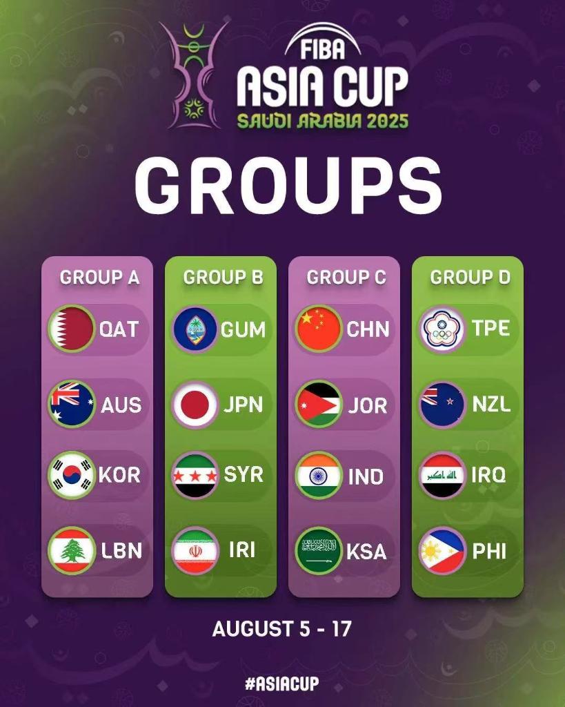 國際籃聯(lián)亞洲杯分組揭曉 中國男籃與約旦隊(duì)同組