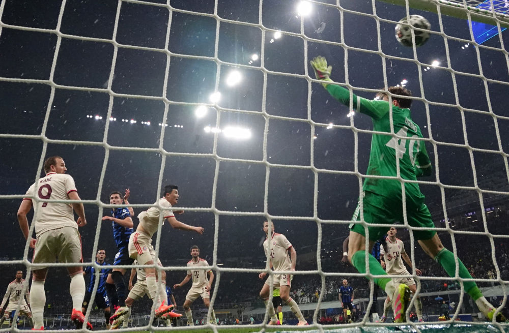國米首回合客場2:1擊敗拜仁,占得先機(jī)。此番再戰(zhàn),兩隊(duì)上半場均未有建樹。第52分鐘,凱恩在禁區(qū)右側(cè)低射得手,打破僵局。6分鐘后,國米通過角球進(jìn)攻扳平比分,由勞塔羅凌空抽射破門。