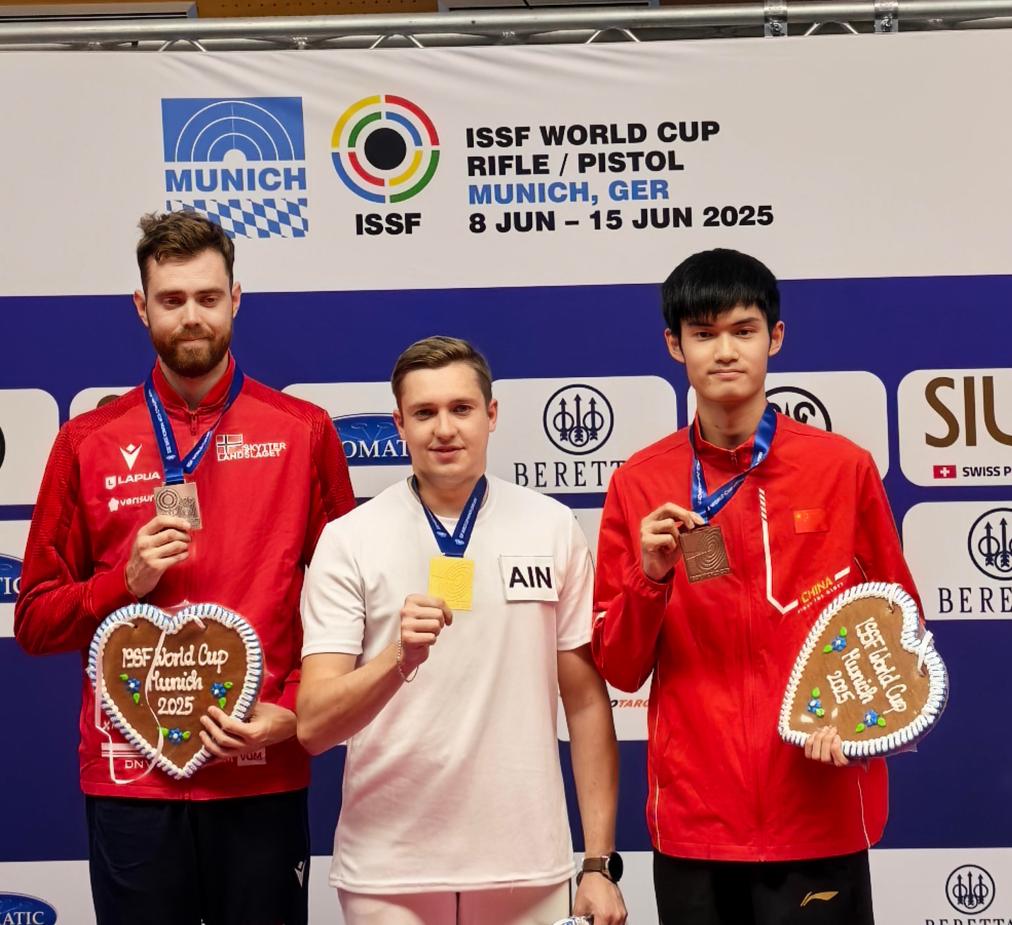 這是盛李豪本年度的第二枚世界杯分站賽獎牌,今年4月,他在射擊世界杯秘魯站上拿到男子10米氣步槍項(xiàng)目的金牌。