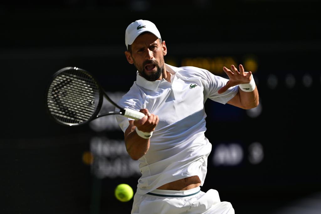 7月11日,焦科維奇在比賽中回球。當(dāng)日,在英國(guó)倫敦舉行的2025溫布爾登網(wǎng)球公開賽男子單打半決賽中,意大利選手辛納3比0戰(zhàn)勝塞爾維亞選手焦科維奇,晉級(jí)決賽。新華社記者 趙丁喆 攝