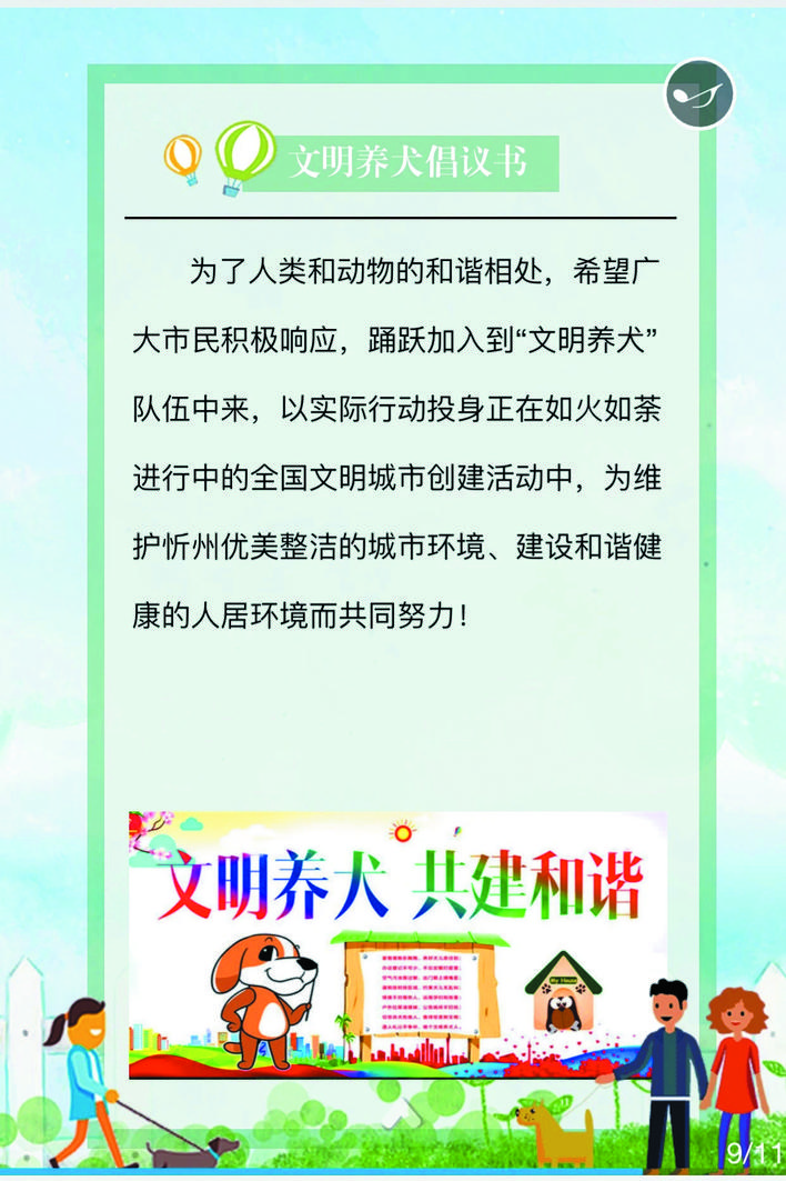 文明養(yǎng)犬,從我做起。讓我們共同努力,心往一處想、勁往一處使,為忻州這座千年之城戴上熠熠閃光的文明桂冠。(魯明強 常曉蓉)