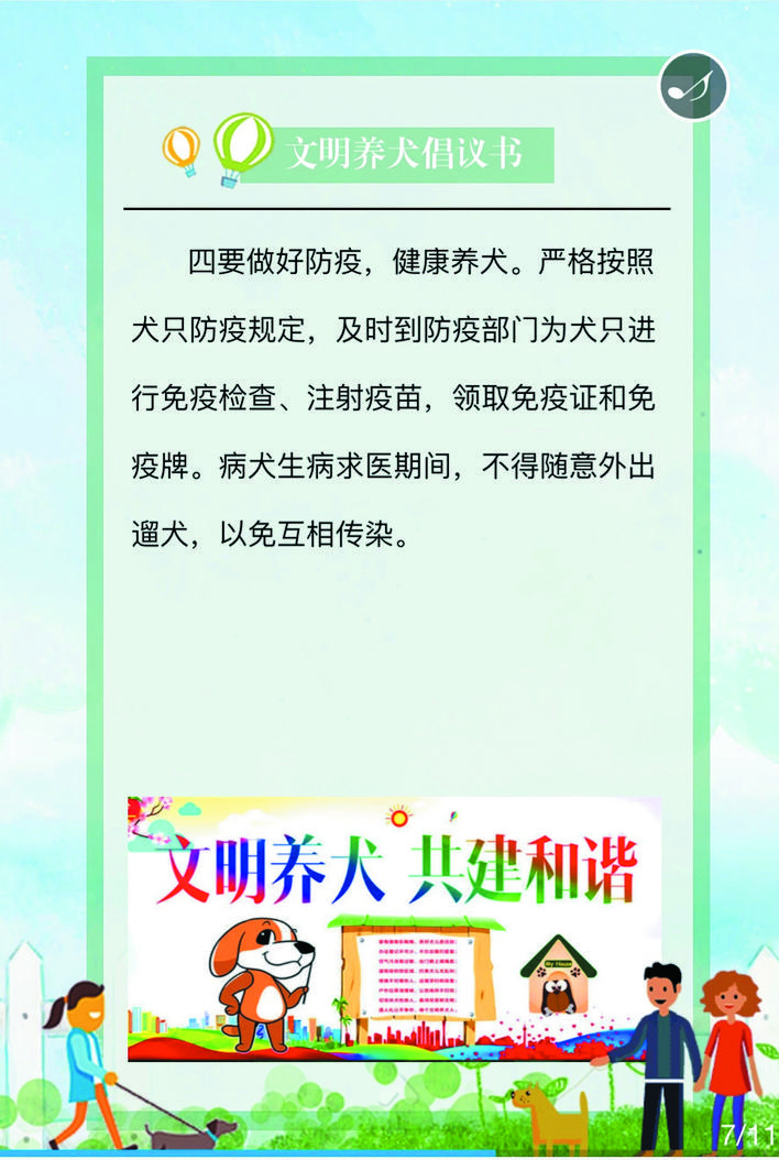 在宣傳活動中,民警深入街道、小區(qū)、商鋪等人員密集場所,在宣傳欄懸掛文明養(yǎng)犬宣傳標(biāo)語、張貼文明養(yǎng)犬倡議書等宣傳資料,向轄區(qū)居民詳細(xì)講解《忻州市養(yǎng)犬管理條例》《文明養(yǎng)犬公告》的具體內(nèi)容,引導(dǎo)養(yǎng)犬群眾主動辦理養(yǎng)犬登記證、出門為犬只佩戴犬牌、定期為犬只注射疫苗,做到依法養(yǎng)犬、文明養(yǎng)犬、衛(wèi)生養(yǎng)犬、健康養(yǎng)犬、安全養(yǎng)犬。活動中,該局共懸掛宣傳標(biāo)語50條,張貼文明養(yǎng)犬倡議書500份,向群眾發(fā)放宣傳資料3500人/份。