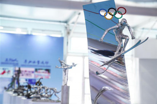 △北京奧林匹克公園中軸景觀大道室外展館A館內(nèi)陳列的冬季運(yùn)動(dòng)雕塑