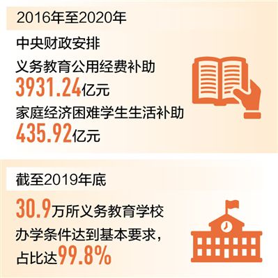 目前,全國1.54億城鄉(xiāng)義務(wù)教育階段學(xué)生都享受著一份“大禮包”:免除學(xué)雜費(fèi)、免費(fèi)提供教科書,家庭經(jīng)濟(jì)困難學(xué)生還能補(bǔ)助生活費(fèi)。2016年至2020年,中央財(cái)政共安排義務(wù)教育公用經(jīng)費(fèi)補(bǔ)助3931.24億元,家庭經(jīng)濟(jì)困難學(xué)生生活補(bǔ)助435.92億元,免費(fèi)教科書補(bǔ)助712.13億元。