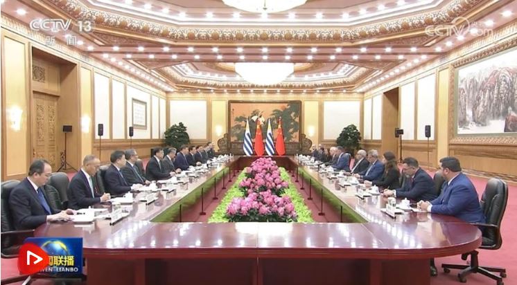 訪問期間,雙方發(fā)表《中華人民共和國和烏拉圭東岸共和國關(guān)于深化中烏全面戰(zhàn)略伙伴關(guān)系的聯(lián)合聲明》。