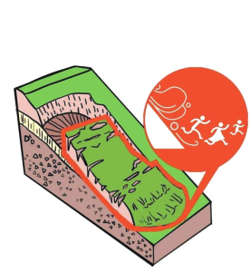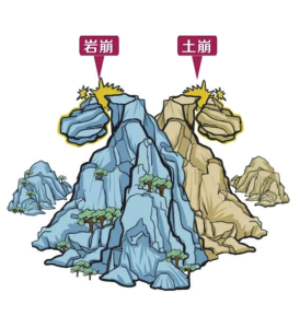 2.遭遇高速滑坡時,如滑坡呈整體滑動時,迅速抱住身邊的樹木等固體物體,也可以躲避在結(jié)實的障礙物下。不能將避災(zāi)場地選擇在滑坡的上坡或下坡。