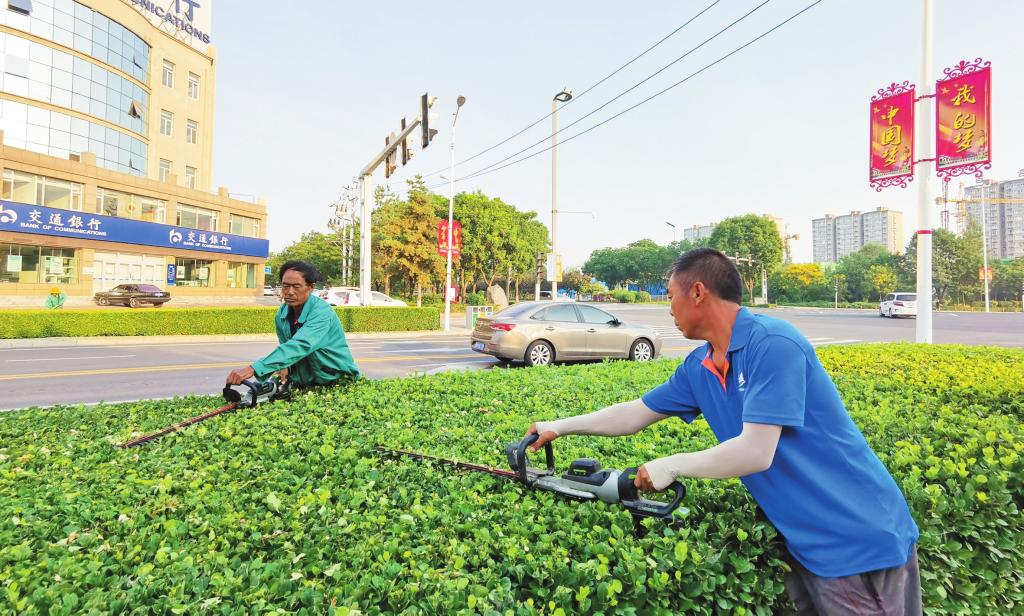 近日,我市園林部門(mén)組織人員對(duì)城區(qū)綠化帶進(jìn)行了修剪。園林工人的辛勤工作為市民營(yíng)造了舒適的環(huán)境。 (王國(guó)棟 攝)