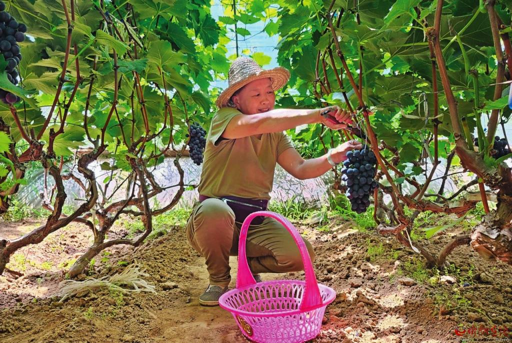 彭麗萍開心地說:“種葡萄8年多了,我們夫妻倆通過不斷看書學習,在網(wǎng)上取經(jīng),再結(jié)合本地大棚葡萄種植的實際情況,不斷提高管護技術,拓寬銷售渠道,收入越來越高,生活越來越好?!保ǚ段钠G)