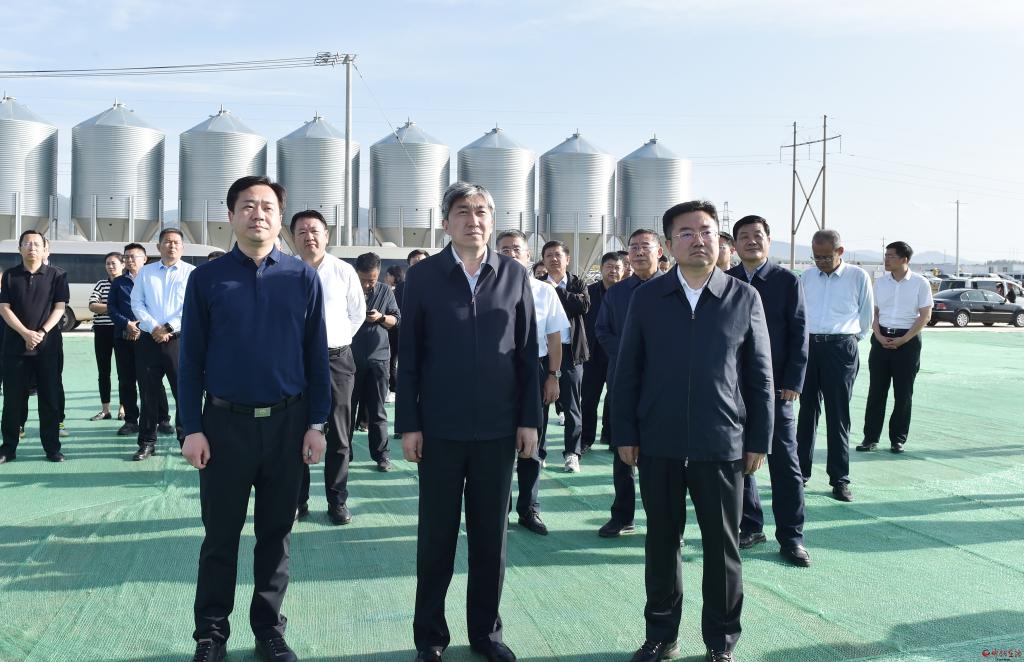 在糧食倉儲物流中心觀摩檢查糧食倉儲項目建設情況。馮曉磊 攝