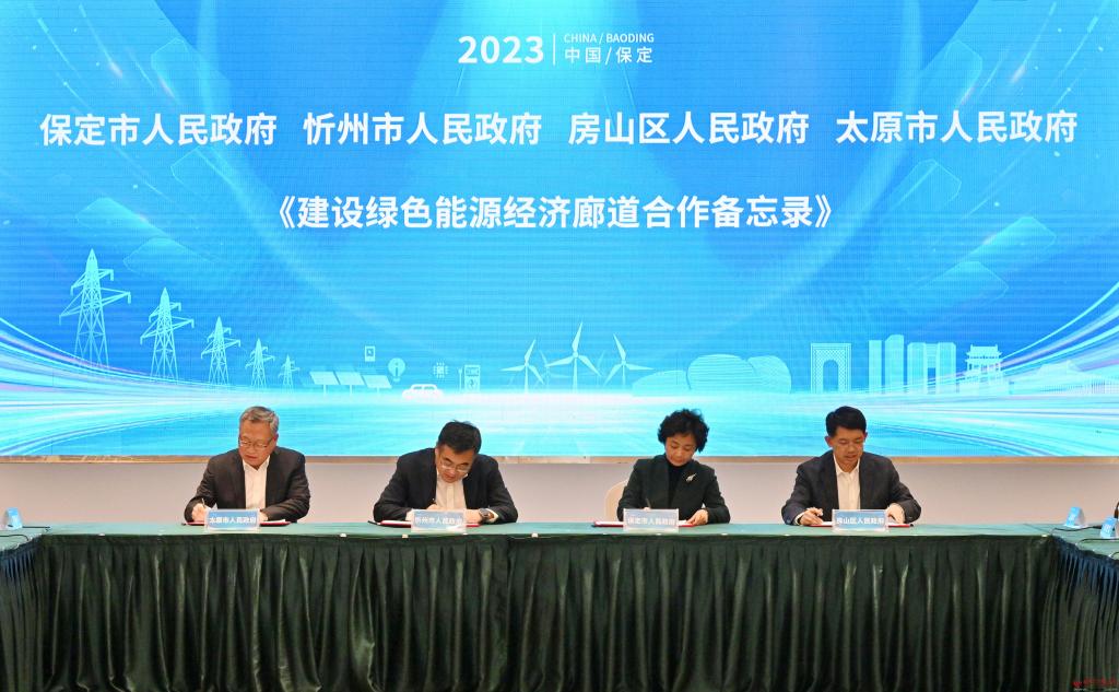 房山區(qū)、保定市、忻州市、太原市簽署《建設(shè)綠色能源經(jīng)濟(jì)廊道合作備忘錄》。馮曉磊 攝