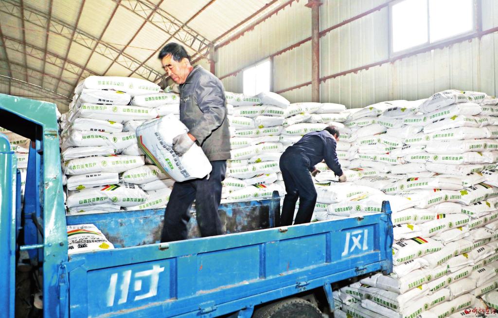 3月14日,在原平市西鎮(zhèn)鄉(xiāng)的山西農(nóng)資國(guó)家化肥儲(chǔ)備庫(kù)內(nèi),工人正在搬運(yùn)化肥。原平市組織農(nóng)資公司及時(shí)調(diào)配、裝運(yùn)化肥等春耕物資,保障農(nóng)資市場(chǎng)供應(yīng),引導(dǎo)農(nóng)民搶抓農(nóng)時(shí),投入春耕備耕生產(chǎn),為全年農(nóng)業(yè)生產(chǎn)夯實(shí)基礎(chǔ)。 (褚 震攝