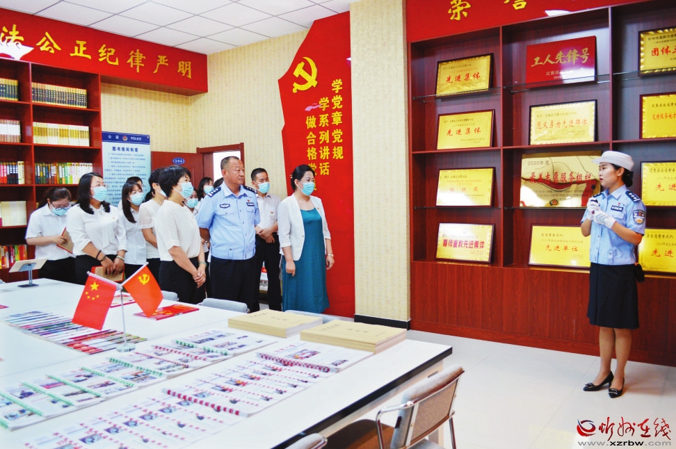 立足崗位,對標(biāo)先進。7月1日,市婦聯(lián)黨組組織全體黨員干部前往“山西省巾幗文明崗”“省級青年文明號”等榮譽稱號獲得單位——定襄縣公安局交警大隊觀摩學(xué)習(xí)。 本報通訊員攝
