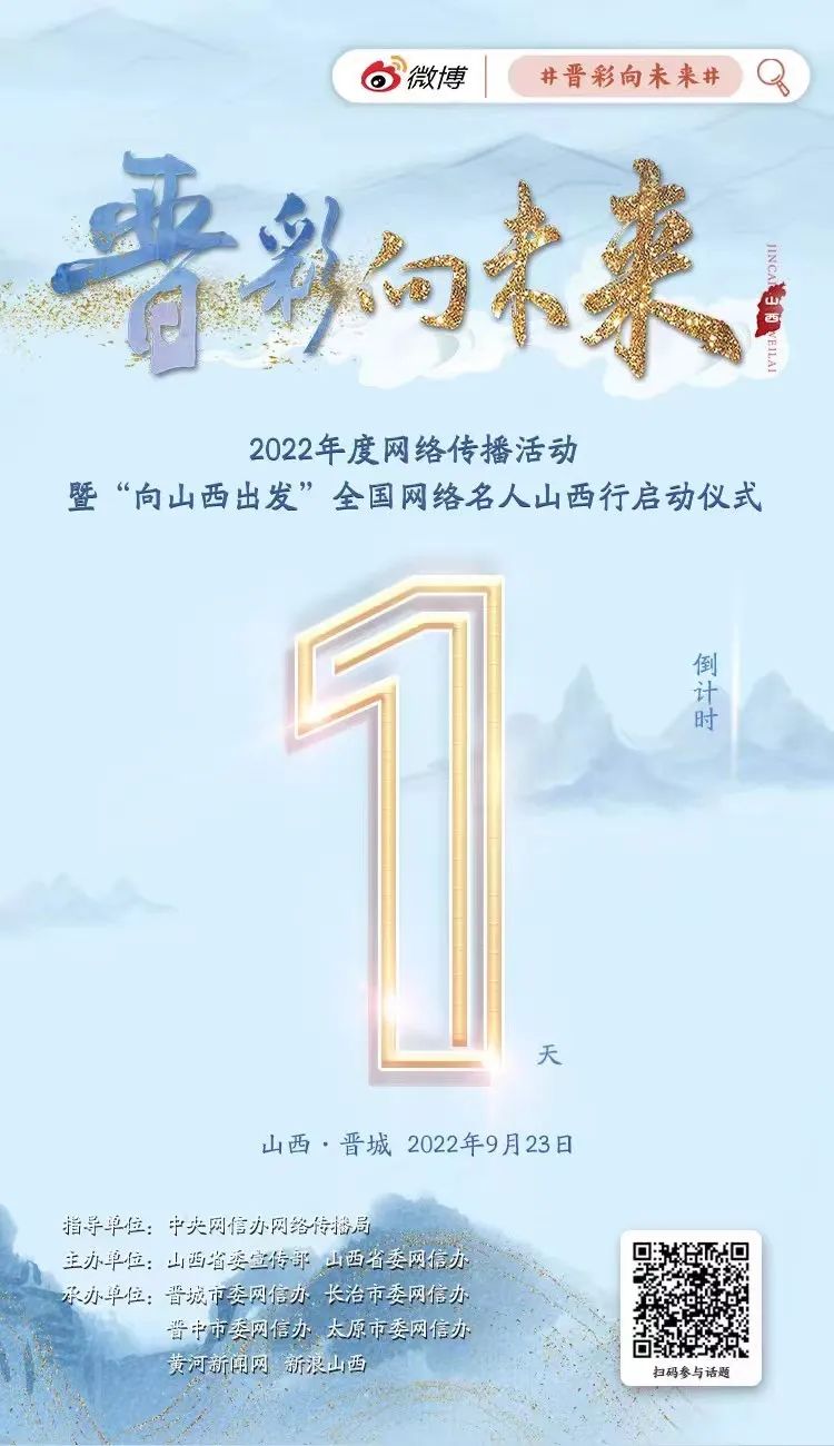 “晉彩向未來”年度網(wǎng)絡(luò)傳播活動(dòng),是“非凡十年?奮‘晉’未來”系列網(wǎng)絡(luò)主題宣傳活動(dòng)之一?;顒?dòng)共分為短視頻征集活動(dòng)、全國(guó)網(wǎng)絡(luò)名人山西行、優(yōu)秀作品展播三階段推進(jìn),目前短視頻征集已在線上預(yù)熱開啟。“晉彩向未來”2022年度網(wǎng)絡(luò)傳播活動(dòng)暨“向山西出發(fā)”全國(guó)網(wǎng)絡(luò)名人山西行活動(dòng)將于9月23日正式啟動(dòng)。
