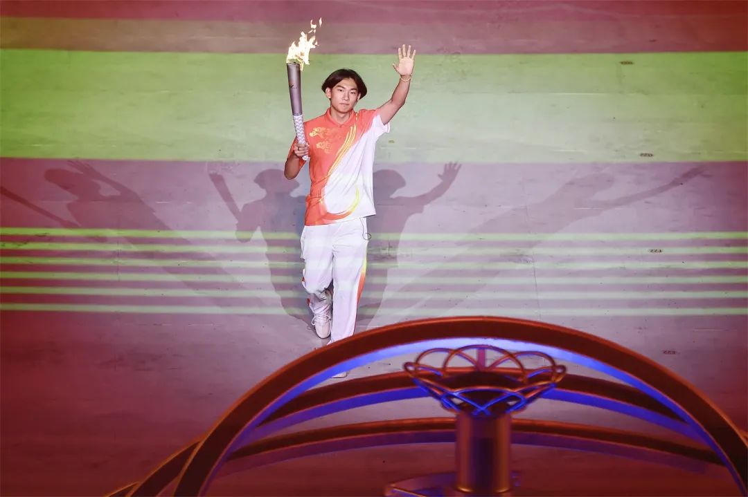 開(kāi)幕式之夜,最為激動(dòng)人心的就是點(diǎn)火時(shí)刻。在射擊世界冠軍張益梵、鄉(xiāng)村干部王春、環(huán)衛(wèi)工人孫秀蘭、大國(guó)工匠官生花、公交司機(jī)馮冰依次傳遞過(guò)后,火炬來(lái)到了最后一棒火炬手、北京冬奧會(huì)冠軍蘇翊鳴的手中。主火炬塔點(diǎn)火裝置以山西民俗“旺火”為設(shè)計(jì)依據(jù),采用清潔能源“微火”點(diǎn)燃的方式。蘇翊鳴手持火炬,在萬(wàn)眾矚目之下,以“微火”點(diǎn)“旺火”,歷史、現(xiàn)在與未來(lái),在這一刻融匯賡續(xù)。