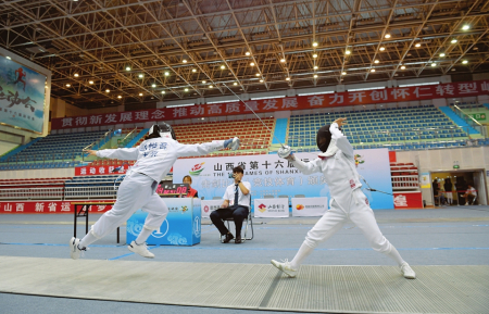 8月16日,省第十六屆運(yùn)動會擊劍比賽舉行,吸引了來自全省7支代表隊(duì)的124名運(yùn)動員參賽。本報(bào)記者阮洋攝
