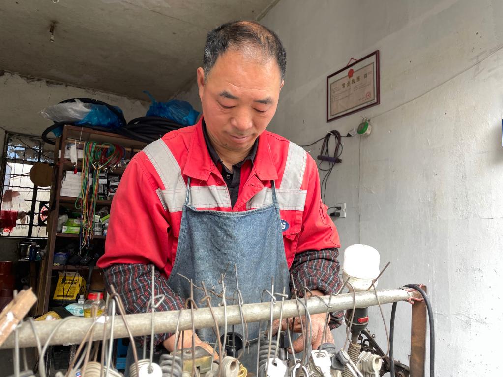 在胡師傅修車鋪內(nèi),一張個(gè)體戶營業(yè)執(zhí)照格外醒目。 新華社記者 程思琪攝