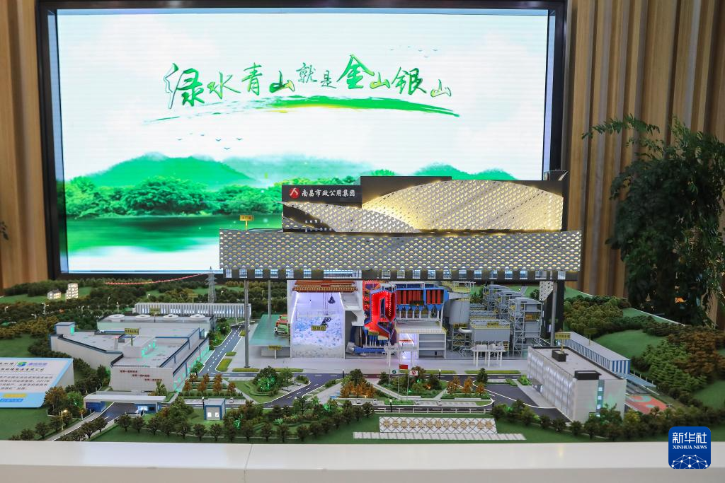 6月29日在江西南昌固廢處理循環(huán)經(jīng)濟(jì)產(chǎn)業(yè)園拍攝的介紹生活垃圾焚燒發(fā)電項(xiàng)目的模型。新華社記者 杜瀟逸 攝