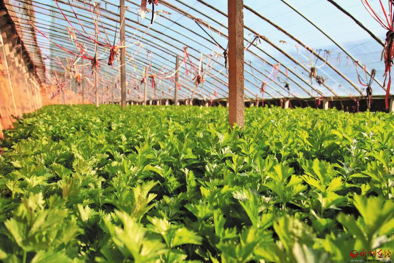 蔬菜大棚內(nèi)西芹長(zhǎng)勢(shì)喜人。 本報(bào)記者 申 健攝