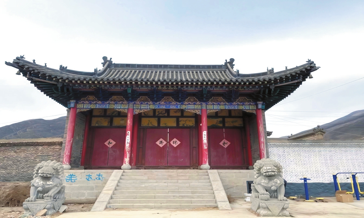 磚砌照壁1座,頂部磚雕垂蓮,懸山頂。東殿1棟,面寬三間,進深四椽,單檐懸山頂,中設(shè)板門,夔龍雀替,中一間為大門,兩盡間是塾屋。保存狀況不佳,板門大都掉落,屋頂雜草叢生。南殿面寬三間,進深四椽,單檐硬山頂。南殿門窗已換成玻璃窗。寺內(nèi)存石獅1對。大寺現(xiàn)為靈境鄉(xiāng)政府所在地。靈境大寺自然陳舊,生活活動局部改變了原貌,要對其進行合理保護。