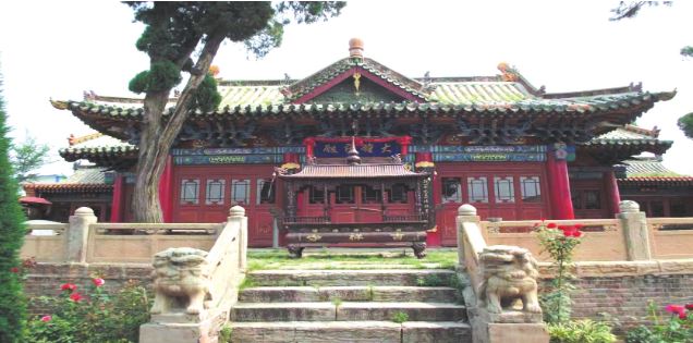 泰山廟位于原平市崞陽鎮(zhèn)平定街村。據(jù)清《崞縣志》記載,創(chuàng)建于元至治三年(1323)。明、清均有修葺。坐北朝南,東西長31.8米,南北寬52.3米,占地面積約1663平方米。中軸線僅存正殿,兩側(cè)為東西配殿及耳房。正殿及東西配殿為明代遺構(gòu),余為清代遺存。正殿石砌臺基,前設(shè)月臺,上置勾欄、望柱,面寬五間,進(jìn)深五椽,單檐懸山頂,六檁前廊式構(gòu)架,斗拱五踩,單翹單昂,裝修原制不存。正殿前建有抱廈三間,單檐歇山頂?,F(xiàn)新塑像23尊。