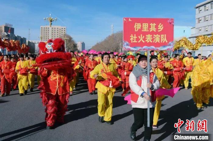 正月初二,在新疆喀什地區(qū)疏勒縣阿拉力鄉(xiāng),民眾們舞起巨龍,各族群眾組成的巡游隊伍穿梭在大街小巷,大家通過舞龍舞獅給沿途群眾送去祝福,營造歡樂祥和喜慶的節(jié)日氛圍。