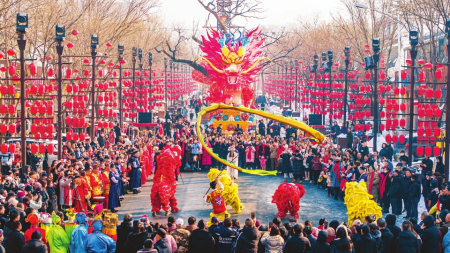 看舞龍、迎財(cái)神、敲鑼鼓……春節(jié)期間,臨汾市區(qū)貢院街、財(cái)神樓街燈光璀璨,人潮涌動(dòng),以“紅紅火火過大年·熱熱鬧鬧來接龍”為主題的春節(jié)接龍活動(dòng)于大年初一正式啟動(dòng)。精彩的文藝表演、琳瑯滿目的年貨、美味的特色小吃等集中亮相,吸引眾多市民前來選購品嘗、休閑娛樂,感受濃濃家鄉(xiāng)年味和傳統(tǒng)文化魅力。