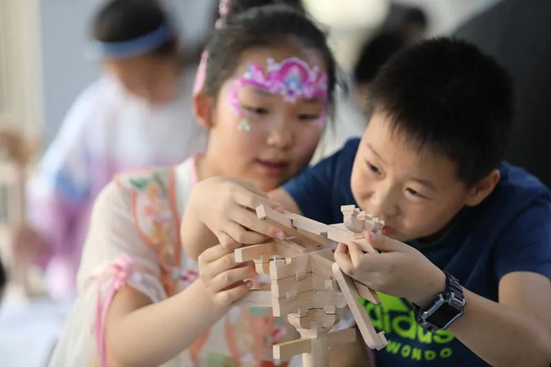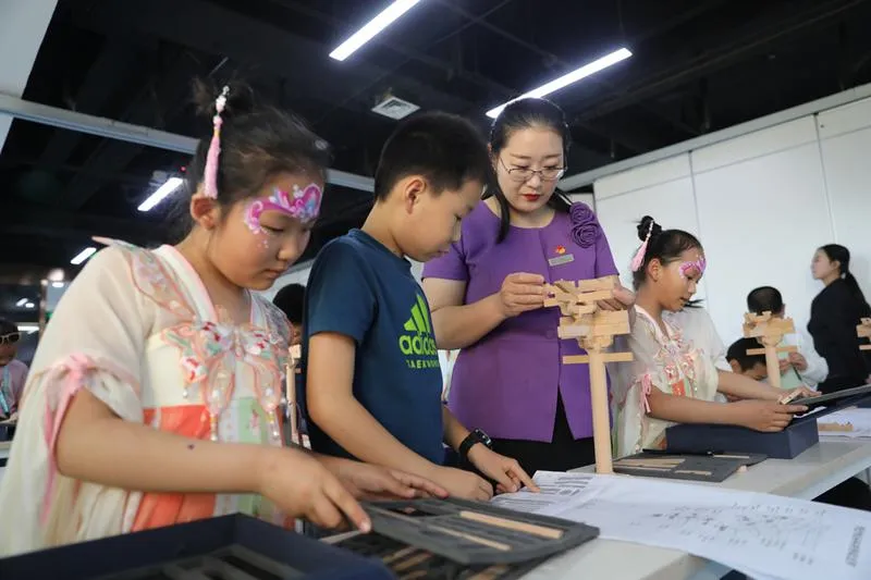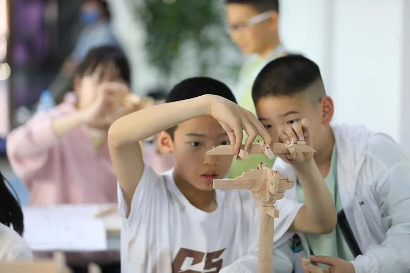 在古建小課堂斗拱搭建中,省博物院老師選取中國古代建筑最關(guān)鍵也是最有特色的斗拱為原型,指導同學們制作了五臺山佛光寺唐代斗拱模型。不僅可以了解山西古代輝煌燦爛的建筑文化,還可以親自動手,體驗唐代斗拱的搭建,感受古代木作匠師的智慧,增進對中國古代建筑文化的了解。