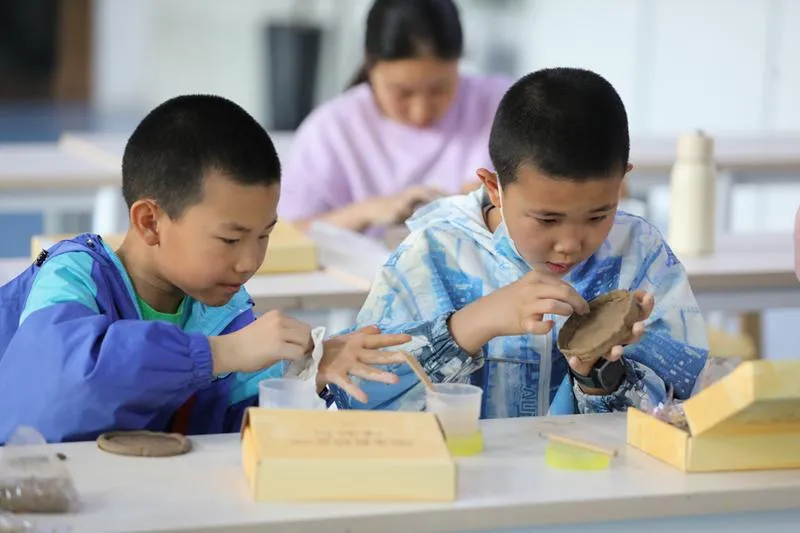 現(xiàn)場,一團陶泥在老師和同學們靈巧的手中變成一只可愛的小兔子、或一只造型美觀的花瓶。泥條盤筑是新石器時代手工制陶最常見的方法之一,此次制作體驗活動中,同學們通過了解陶器制作技術(shù),并結(jié)合泥條盤筑動手體驗,感受到幾千年前古人的勞動技能,體驗古老的制陶工藝。