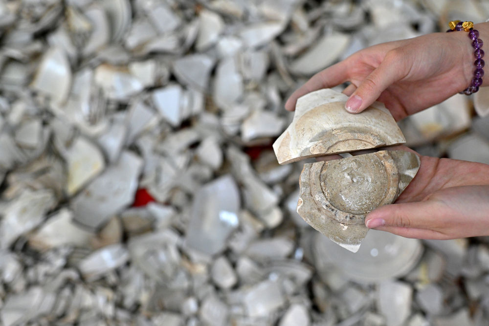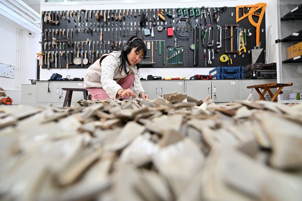 在云岡研究院可移動文物修復(fù)室,工作人員高嘉珩在進行瓷器修復(fù)(2024年2月26日攝)。