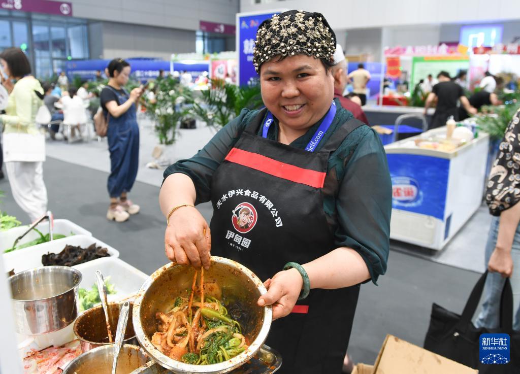 5月23日,來自甘肅天水的參展商在第二十屆文博會現(xiàn)場展示天水麻辣燙。(新華社記者 毛思倩 攝)