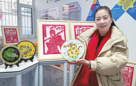當日,下站街道文化活動室五顏六色、惟妙惟肖的彩色剪紙作品,也讓之前只見過紅色剪紙作品的記者眼前一亮。“這是染色剪紙。制作之前,需要先在白紙上起稿。剪出來后,會根據(jù)不同部位的特點進行上色,讓作品更加生動、更加活靈活現(xiàn)?!倍绶冀榻B,這次剪紙活動也是街道“非遺賀新春”主題活動的一部分,圍繞蛇年主題系列進行創(chuàng)作。