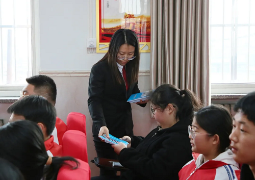 活動(dòng)中,中院宣傳處副處長(zhǎng)溫振華用幽默生動(dòng)的語(yǔ)言,講授了法的定義、憲法的重要性和主要內(nèi)容以及法院職能等知識(shí),引導(dǎo)同學(xué)們把憲法精神貫徹到日常生活學(xué)習(xí)中,自覺(jué)遵守憲法,維護(hù)憲法權(quán)威。中院民一庭副庭長(zhǎng)梁曉莉和五臺(tái)法院干警姚旭峰針對(duì)學(xué)生的年齡特點(diǎn)和實(shí)際需求,以自身審理的典型案例為切入點(diǎn),深入淺出地講解了與青少年密切相關(guān)的法律知識(shí)。內(nèi)容涵蓋了毒品危害、網(wǎng)絡(luò)成癮、電信詐騙、校園欺凌、家庭暴力等多個(gè)方面,引導(dǎo)同學(xué)們從小事做起,養(yǎng)成良好的習(xí)慣,處處遵守法律法規(guī)、社會(huì)公德,自覺(jué)抵制違法犯罪的引誘,提高用法律武器維護(hù)自身合法權(quán)益的意識(shí)。在普法的同時(shí),法官干警還結(jié)合正在開(kāi)展的“平安建設(shè)宣傳周”活動(dòng),主動(dòng)向大家宣講了《山西省平安建設(shè)條例》,引導(dǎo)同學(xué)們認(rèn)真學(xué)習(xí)平安建設(shè)知識(shí),共建平安和諧校園。同學(xué)們積極參與互動(dòng),踴躍發(fā)言,課堂氣氛活躍。