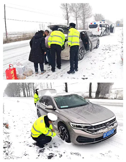 寒風(fēng)凜冽,大雪紛飛,你們卻起早貪黑,從未有過絲毫懈怠。每一個清晨,當(dāng)人們還在溫暖的被窩中時,你們已奔赴道路,指揮交通;每一個深夜,在萬家燈火映照下,你們的身影仍在街頭佇立。為了讓返鄉(xiāng)出行的人們安全回家過年,你們?nèi)檐囕v保駕護航。遇到受困的車輛與人員,你們毫不猶豫地伸出援手,推車、除雪、提供應(yīng)急物資,用真誠與過硬作風(fēng),書寫著警民和諧的動人篇章。