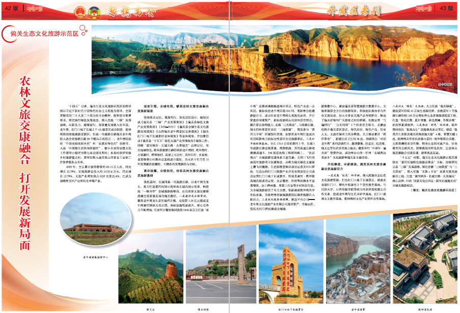 “十五五”時(shí)期,偏關(guān)生態(tài)文化旅游示范區(qū)將錨定“黃河長(zhǎng)城特色旅游品牌縣”目標(biāo),持續(xù)深化縣委“三綠”發(fā)展戰(zhàn)略,深化晉蒙“三地聯(lián)盟”與“三關(guān)聯(lián)動(dòng)”,深入實(shí)施“文旅+百業(yè)”農(nóng)林文旅交康融合工程,打造“黃河峽谷·長(zhǎng)城天路·大美偏關(guān)”核心品牌,叫響“國(guó)家文化公園縣·黃河長(zhǎng)城偏關(guān)見(jiàn)”全域文旅新標(biāo)識(shí)。